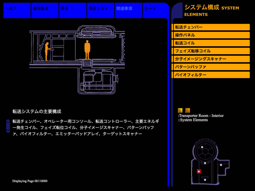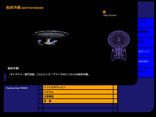 「ツアーモード」を選択すると、「新スタートレック?」のピカード艦長による船内各所の説明を聞くことができます。ピカード艦長の声もテレビシリーズなどの吹き替え版と同じく麦人氏が担当しています。